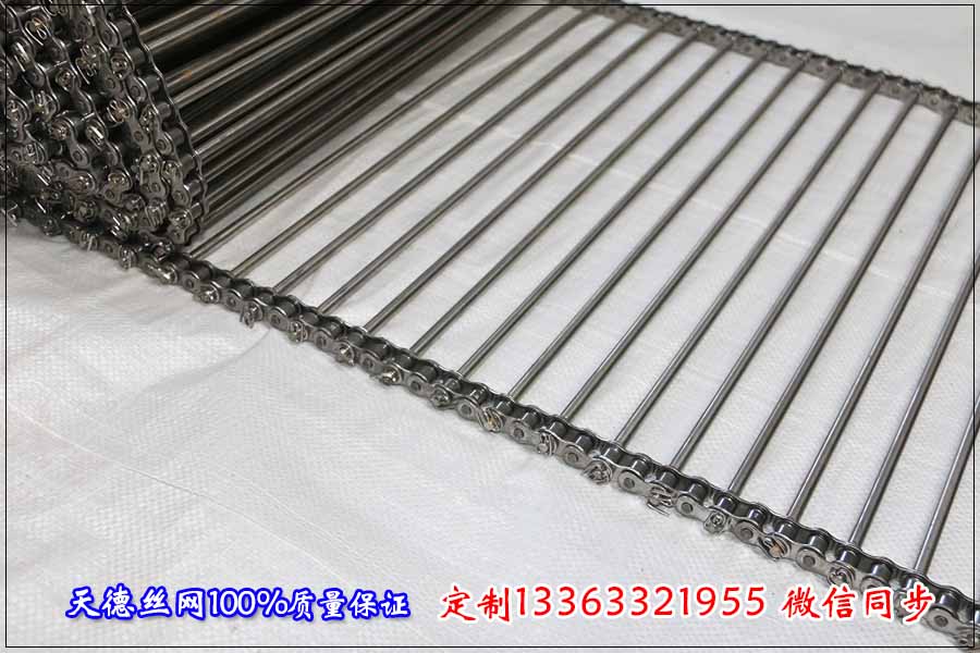 鏈桿輸送帶可采用碳鋼、不銹鋼201/304/316不銹鋼材料,以鏈條傳動(dòng),鏈條可選用標(biāo)準(zhǔn)鏈條和雙節(jié)距輸送鏈條使網(wǎng)帶受力減小容易安裝網(wǎng)帶的附屬配件,如擋板,側(cè)翼,用于輸送固體物料,通透性好,易清洗. 旋的繞絲串起來(lái)形成平衡編織的輸送網(wǎng),螺距能做到3毫米,每1米寬網(wǎng)帶有333個(gè)圈。節(jié)距能做到6毫米,每1米網(wǎng)帶長(zhǎng)有166根曲軸。 該網(wǎng)帶通常網(wǎng)絲是圓的,但也可以制作成扁絲的。材料可選碳鋼、201不銹鋼、304不銹鋼、316不銹鋼等。