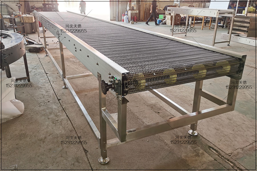 歡迎來電定制河北天德網帶式水果罐頭生產線不銹鋼鏈條輸送機:15231229955 網址:http://www.irregal.com//
