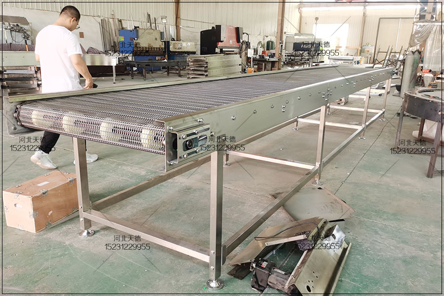 3.食品網(wǎng)帶輸送機(jī)輸送量大。運(yùn)量可從每小時(shí)幾公斤到幾千噸,是連續(xù)不中斷運(yùn)送,這是火車、汽車運(yùn)輸瞠乎其后的。