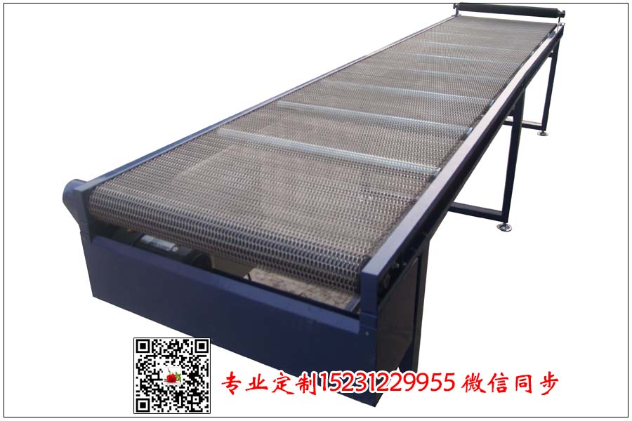網帶輸送機在生產加工采用金屬絲編織的金屬網帶為輸送載體的,因此我們說金屬絲的材質也會影響著產品的質量,設計的時候金屬網帶輸送機的兩側都是加裝鏈條中間用穿銷連接的,我們都是采用鏈輪傳動鏈條從而使輸送網帶沿鏈條傳送方向而運動。 我們平時的時候要多加注意網帶輸送機的保養(yǎng)與維護可以延遲產品的使用壽命,制作材質絕大多數是鋼,金屬輸送機根據各生產企業(yè)的生產工藝的不同,特殊情況下還可采用有色金屬和工程塑料來進行制作。